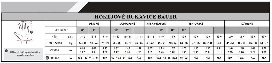 Další parametry Bauer Rukavice Bauer Supreme Mach S23 YTH, Dětská, červená, 8"